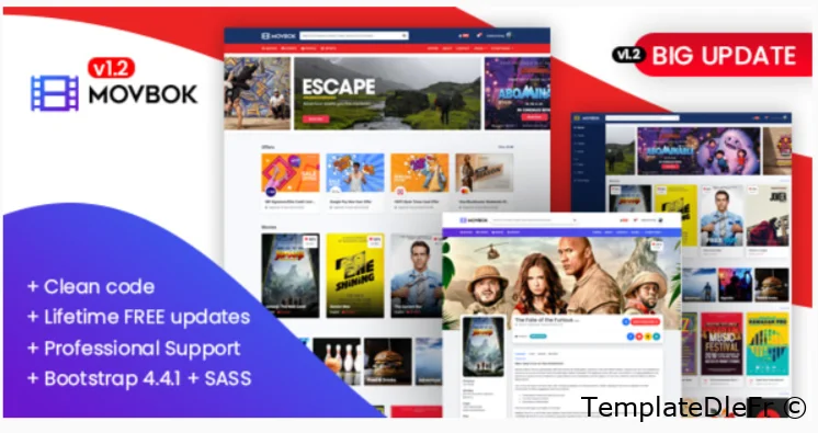 Je vous présente Movbok V2 qui est un modèle de film moderne, puissant, léger et performant pour DLE 18.0 à 19.1. Il est entièrement réactif et semble incroyable sur n'importe quel appareil.