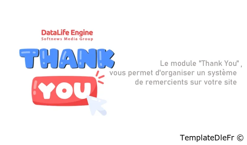 Module "Thank_You" pour DLE 14.x, 15.x, 16.x, 17.x, 18.x, 19.x, qui vous permet d'organiser un système de remerciements sur votre site. Vous pourrez désactiver le module globalement,