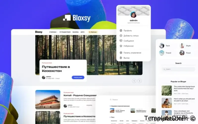 Le modèle moderne et minimaliste de Bloxsy est créé sous la version actuelle de DLE 18.1 et 19.0 est destiné à devenir un produit de masse pour les blogs et les sites d'information. Le modèle