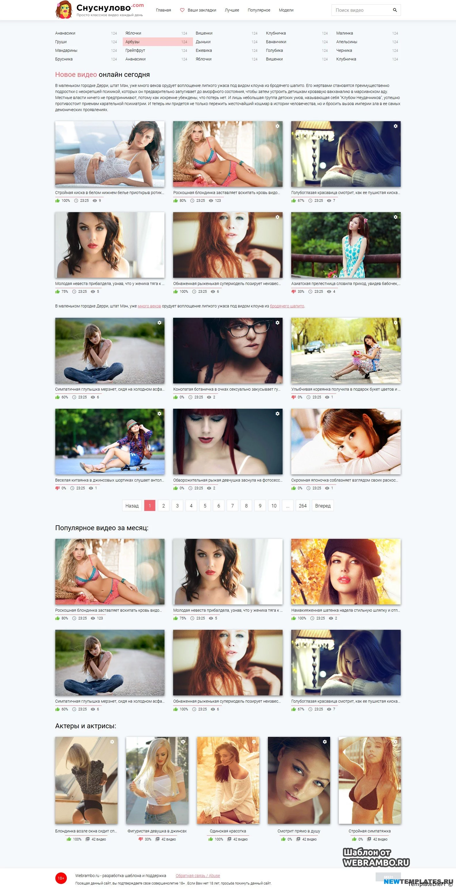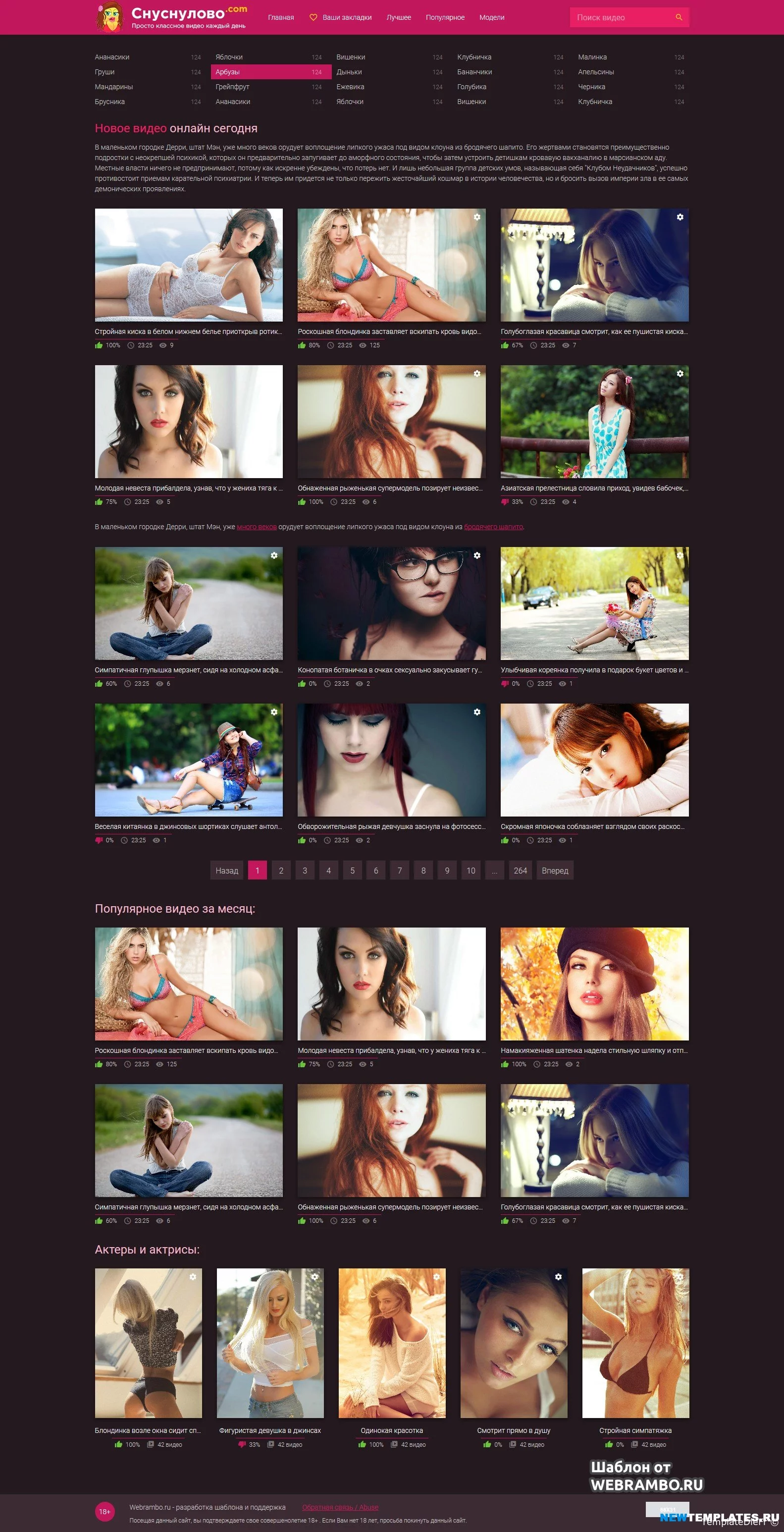 • SNUSNULOVO ou SNOOPY est beau modèle adaptatif pour les sites avec des vidéos pour adultes ou autres vidéos en ligne. Fabriqué à l'instar d'un tuba adulte populaire. Le modèle est très léger, avec une structure claire et pratique. En outre, le modèle présente une apparence moderne et élégante, une mise en page adaptative de haute qualité, ainsi que des couleurs sombres et claires dans le kit.