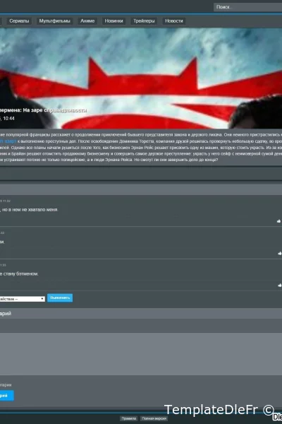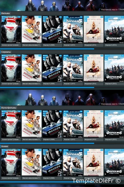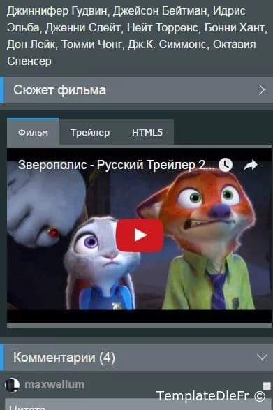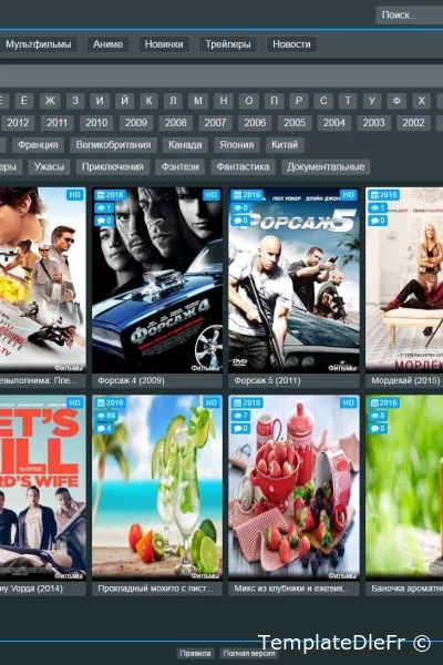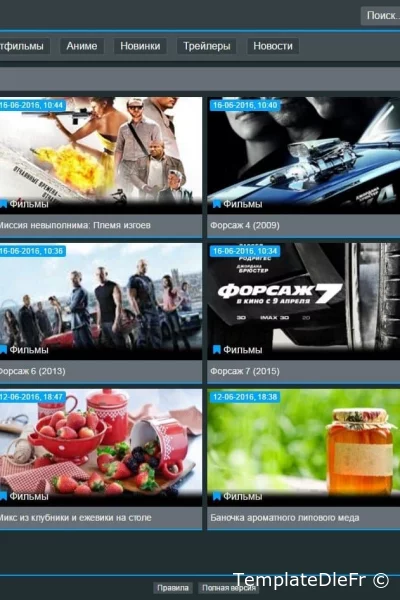 Modèle de film unique en son genre TouchKino pour les appareils mobiles. Ce modèle est une version mobile du modèle KinoZona pour DLE 15.x. Le modèle est entièrement réactif, s'étire pour s'adapter à n'importe quelle résolution d'écran. La direction principale du modèle est de l'utiliser comme version mobile, mais il peut également être utilisé comme version PC principale. En termes fonctionnels, le modèle a tout ce dont vous avez besoin : il existe 2 types d'actualités complètes et courtes, respectivement pour les films et les actualités régulières ; commentaires arborescents ; onglets pour les joueurs ; sortie de trame ; pouce vers le haut/vers le bas ; espaces publicitaires préparés. La vidéo montre comment le modèle fonctionne sur les appareils mobiles.Auteur: MaxwellumVersion DLE: 15.3, DLE 15.2, DLE 15.1, DLE 15.0, DLE 14.3, 14.2, 14.1, 14.0Largeur: 299px - 1000pxCompatibilité entre navigateurs: IE, Mozilla, Opera, Google Chrome, SafariEnsemble complet: modèle