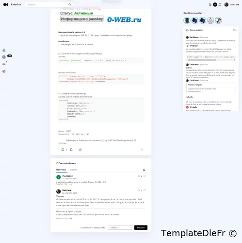 Katrina V2 est un thème vraiment minimaliste et moderne qui rappelle Tjournal. Les développeurs l'ont créé pour les blogs et les sites Web, les magazines en ligne ou tout autre. Basé sur le framework Bootstrap. Ce qui signifie une vitesse de téléchargement élevée, une adaptabilité totale et un fonctionnement correct sur n'importe quel appareil. De plus, plusieurs modules uniques ont été créés spécifiquement pour ce thème. Dans les archives, en plus du thème clair, il existe une version sombre.Sur la page principale du portail, le contenu est affiché sur deux colonnes. Mais en même temps il y a une troisième colonne, elle est à gauche et extrêmement minimaliste. Dans celui-ci, vous pouvez ouvrir le menu en un clic. Dans lequel il y a une brève description du portail. Il y a des sections du site avec le nombre de nouvelles publiées. Et voici un lien rapide pour écrire un article sur ce site. Un pied de page a été ajouté au bas du menu déroulant, où tous les droits d'auteur et liens vers des pages statiques sont rendus.Le contenu est affiché dans la colonne du milieu et ressemble visuellement aux réseaux sociaux. Il y a un titre, une catégorie avec une icône unique, le nom de l'auteur et la date de publication. Juste en dessous de l'aperçu, vous pouvez aimer les nouvelles. Voir le nombre de commentaires et mettre le message en signet. La colonne de droite affiche les derniers articles et commentaires du blog. De plus, un pied de page avec des liens vers les réseaux sociaux et des pages statiques est également disponible ici. La palette de couleurs globale est gris clair avec une teinte violette. Il a l'air attrayant, les yeux ne se lassent pas de la lisibilité au niveau. De plus, il y a un thème gris foncé avec un fond bleu foncé. Il est également pratique pour les longues visites sur le portail.