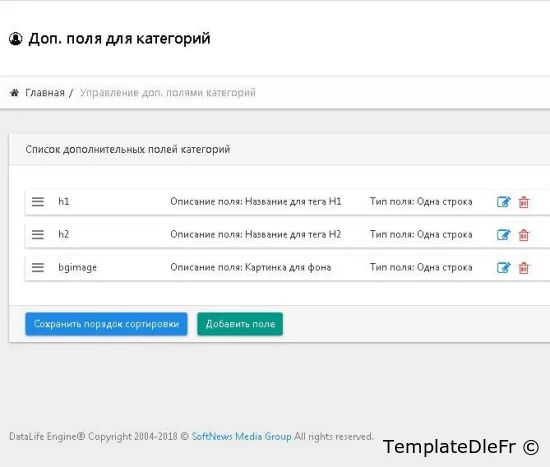 • Mise à jour du module XCats, qui fonctionne un peu comme les champs d'actualités supplémentaires standard. Il existe trois types de champs pour les catégories : « une ligne », « plusieurs lignes », « liste ». Vous pouvez ajouter un nouveau champ en cliquant sur le bouton "Ajouter un champ". Sur la page qui s'ouvre, vous devez saisir un nom de champ unique (uniquement des lettres et des chiffres latins), une description du champ et le contenu du champ par défaut pour le type « liste ».