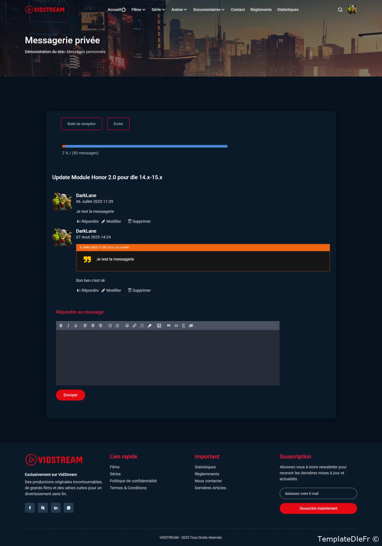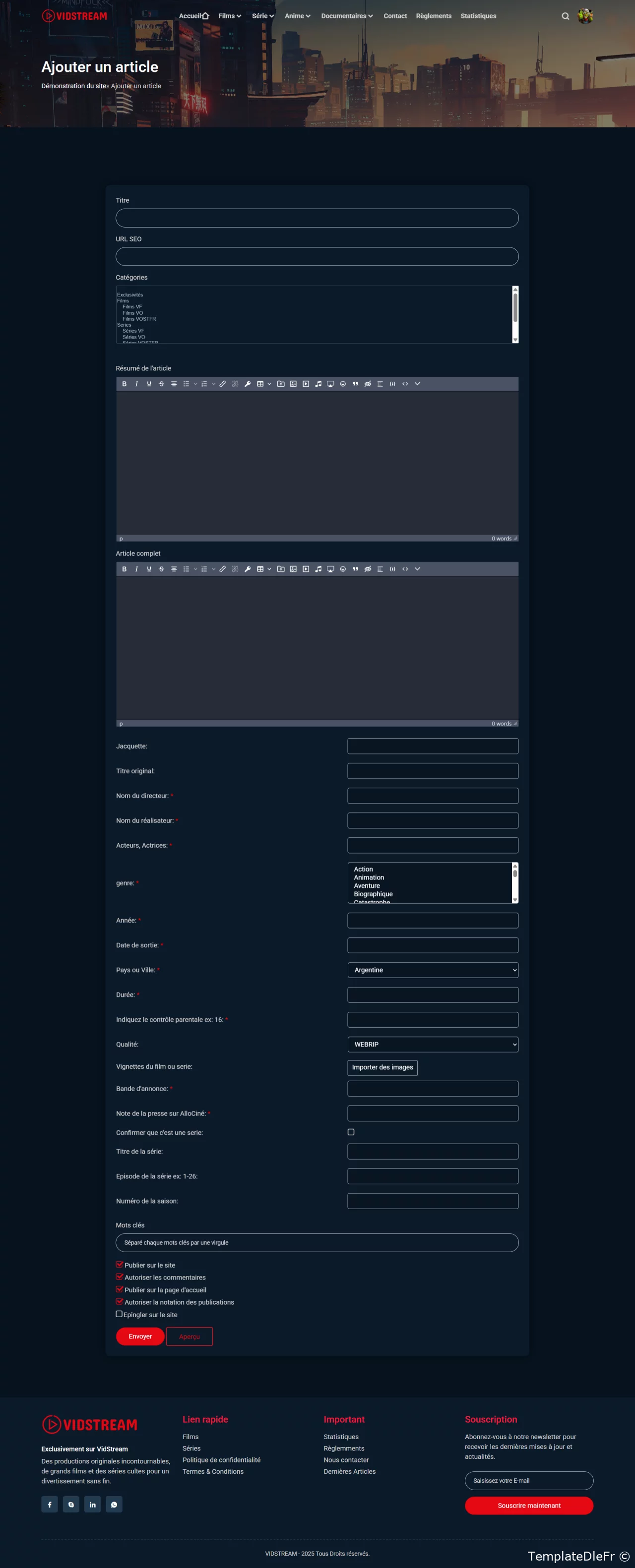 Vidstream - est un modèle pour DLE 18.0-18.1 épuré, moderne et réactif pour votre site web dédié aux médias ou aux vidéos, aux films, au streaming, aux émissions de télévision et aux jeux. Vidstream est simple à personnaliser et très facile à comprendre. Vidstream présente un design sympa. Ce modèle propose 3 variantes de page d'accueil. Il est entièrement réactif et prend en charge les navigateurs et appareils courants. Vidstream est facile à personnaliser et dispose d'une documentation complète afin de répondre à vos besoins. Créez votre site web avec un design cool et épuré.