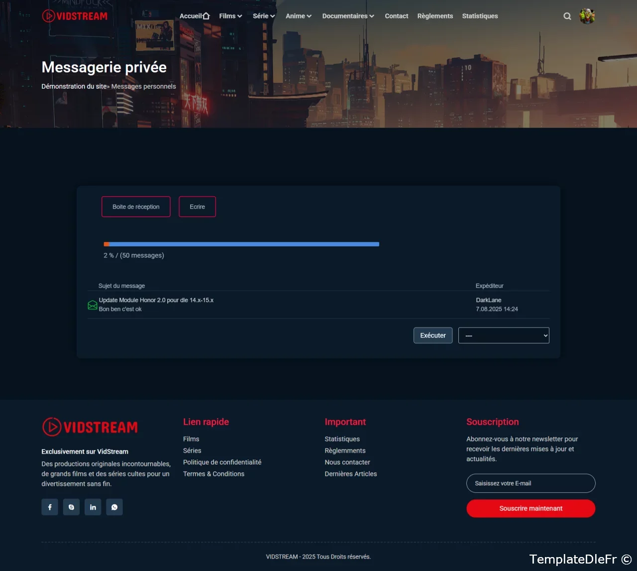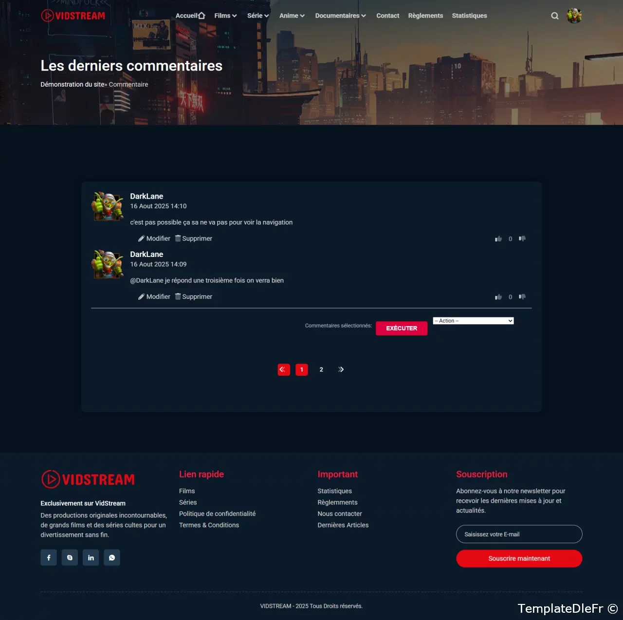 Vidstream - est un modèle pour DLE 19.0 épuré, moderne et réactif pour votre site web dédié aux médias ou aux vidéos, aux films, au streaming, aux émissions de télévision et aux jeux. Vidstream est simple à personnaliser et très facile à comprendre. Vidstream présente un design sympa. Ce modèle propose 3 variantes de page d'accueil. Il est entièrement réactif et prend en charge les navigateurs et appareils courants. Vidstream est facile à personnaliser et dispose d'une documentation complète afin de répondre à vos besoins. Créez votre site web avec un design cool et épuré.