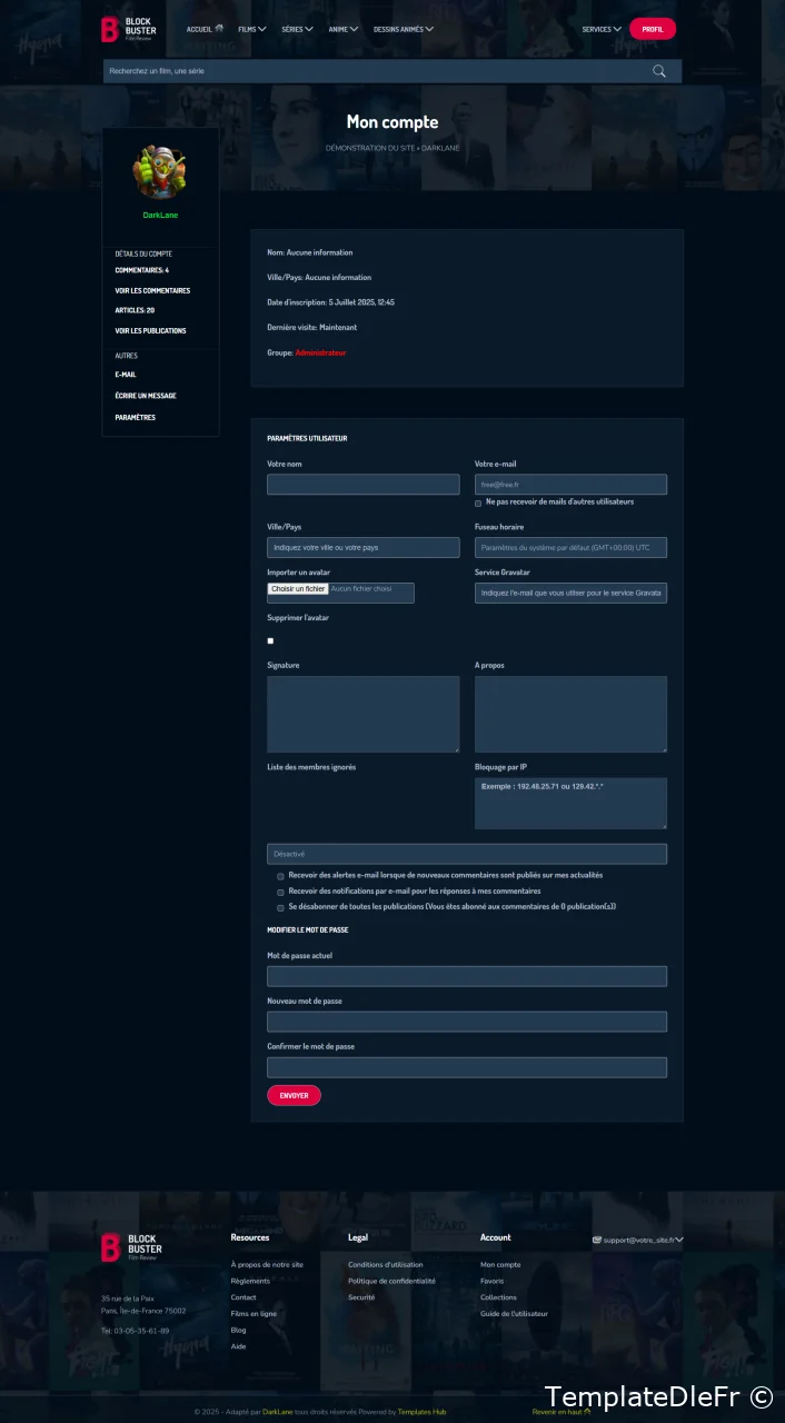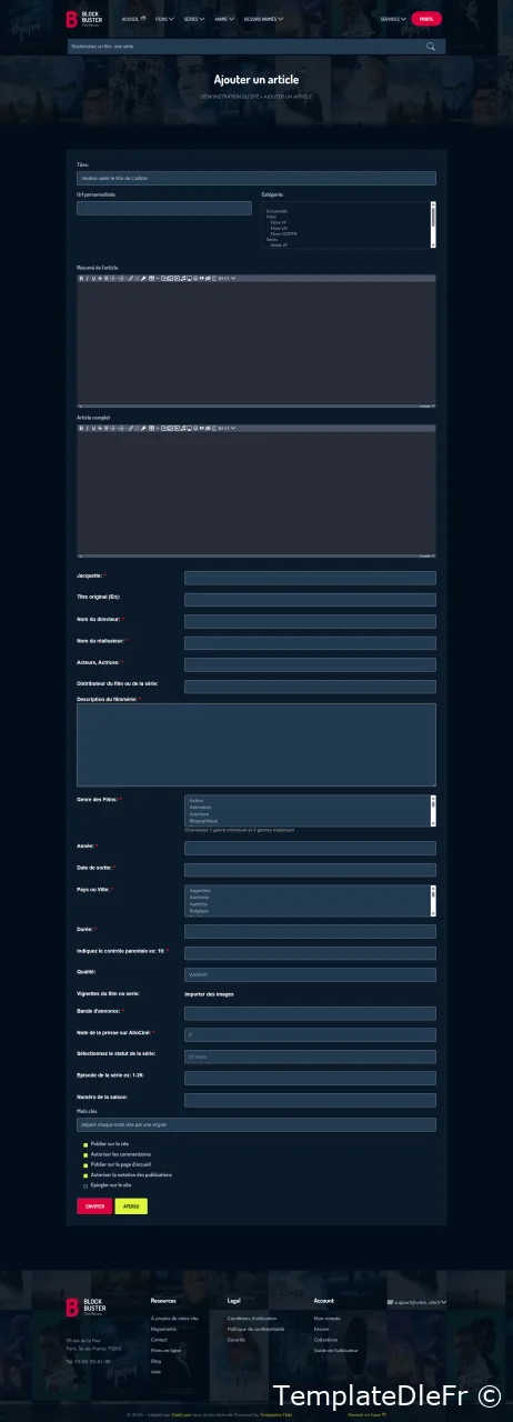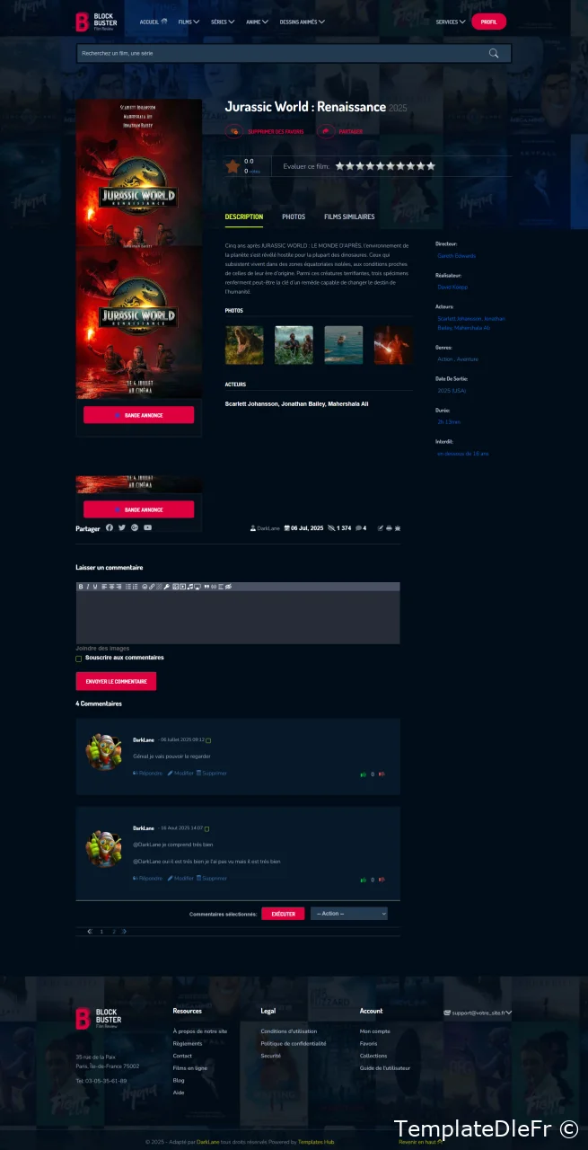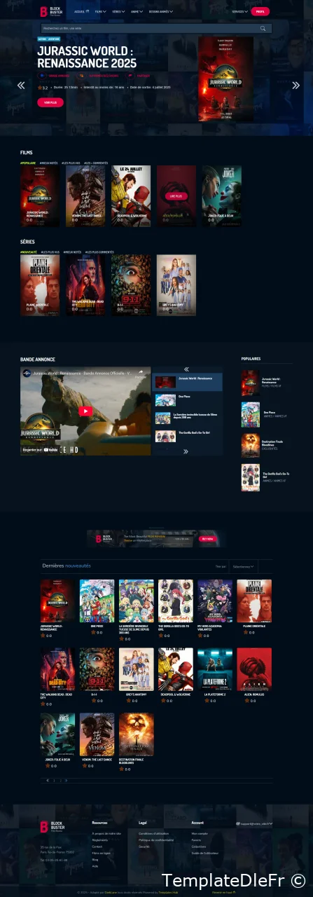 Je vous présente le thème Block Buster v3 pour Dle 19.0 il est idéal pour les sites de films ou de série! Si vous voulez lancer une base de données de films, une revue de films, une présentation de projet, des films, un modèle web puissant avec un design diversifié est ce que vous recherchez probablement. BlockBuster est l'un de ces modèles. Construit avec HTML5 , CSS3 et jаvascript, il comprend également un grand nombre d'éléments dynamiques tels que des films et des émissions de télévision, des curseurs et des cartes interactives. Son menu adhère en haut de l'écran lors du défilement Grâce à sa capacité de réponse et à sa compatibilité entre les navigateurs, ce template sera aussi beau sur n'importe quel appareil moderne.