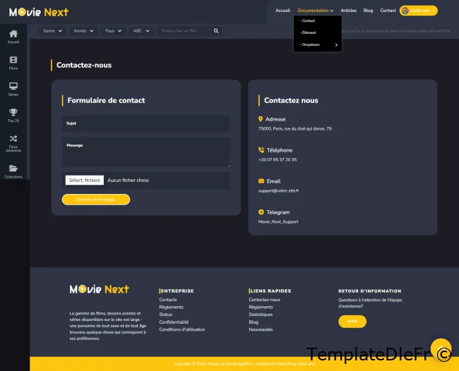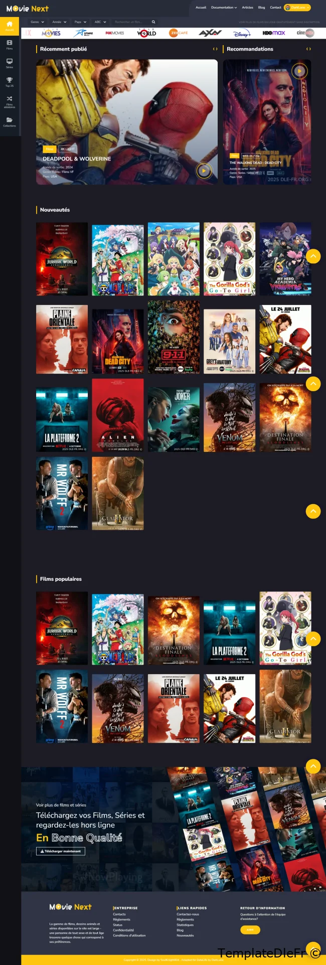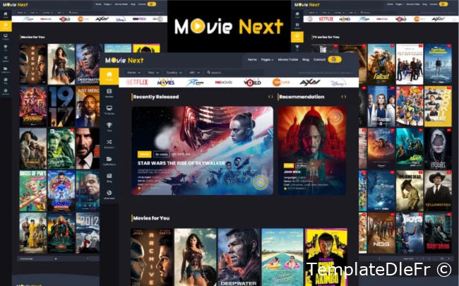 Éteignez les lumières, le pop-corn est prêt et que le spectacle commence! Êtes-vous cinéphile ou fanatique de séries télévisées ? Vous recherchez un moyen élégant et efficace de regarder des films et des séries télévisées en ligne? Cherchez pas plus loin! Movie Next est le modèle de site Web de divertissement parfait pour vous. Movie Next est la solution ultime pour tous vos besoins en streaming de films et de séries télévisées en ligne. Sa conception réactive garantit que vous pouvez profiter de votre expérience visuelle sur n'importe quel appareil, regarder facilement des films et des séries télévisées en ligne sur ce modèle entièrement réactif. Profitez d'une compatibilité totale entre les navigateurs pour une expérience visuelle fluide. Dites adieu aux problèmes de mise en mémoire tampon et de compatibilité avec Movie Next, regardez facilement vos films et émissions de télévision préférés à l'aide de ce modèle convivial. Améliorez votre expérience de streaming dès aujourd'hui avec Movie Next.
