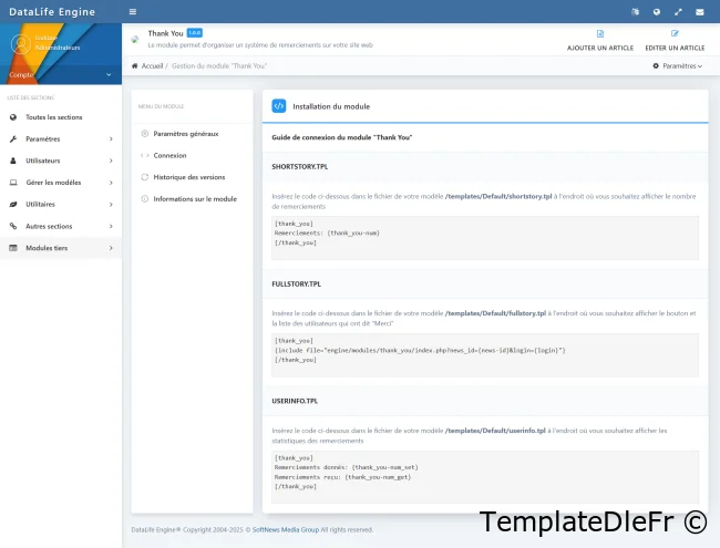 Module Thanks 2.3 dle
